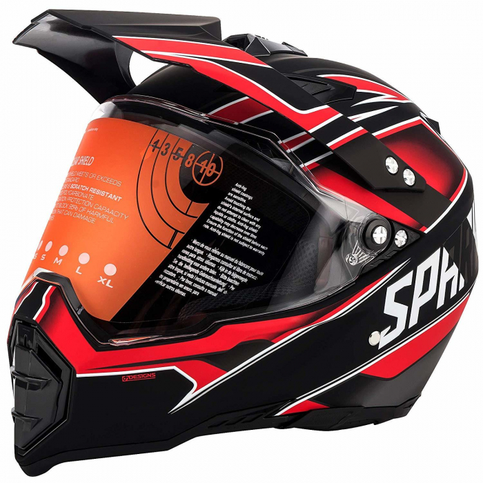 Casca cu viziera si cozoroc de la Spark Motors care poate fii folosita atat off-road dar si on-road datorita sistemului etans de inchidere al viziera ce permite rularea cu peste 100km/h si forma aerodinamica datorita cozorocului detasabil