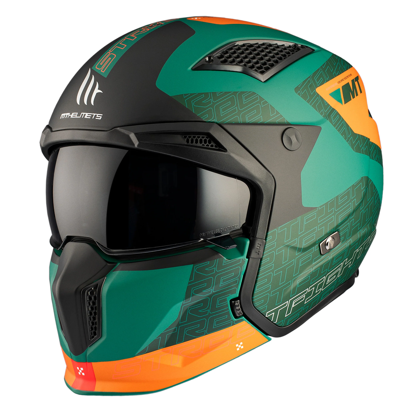 Casca MT Streetfighter SV S Totem C6 verde mat (ochelari soare integrati) – masca (protectie) barbie si cozoroc detasabile – omologare noua ECE 22.06