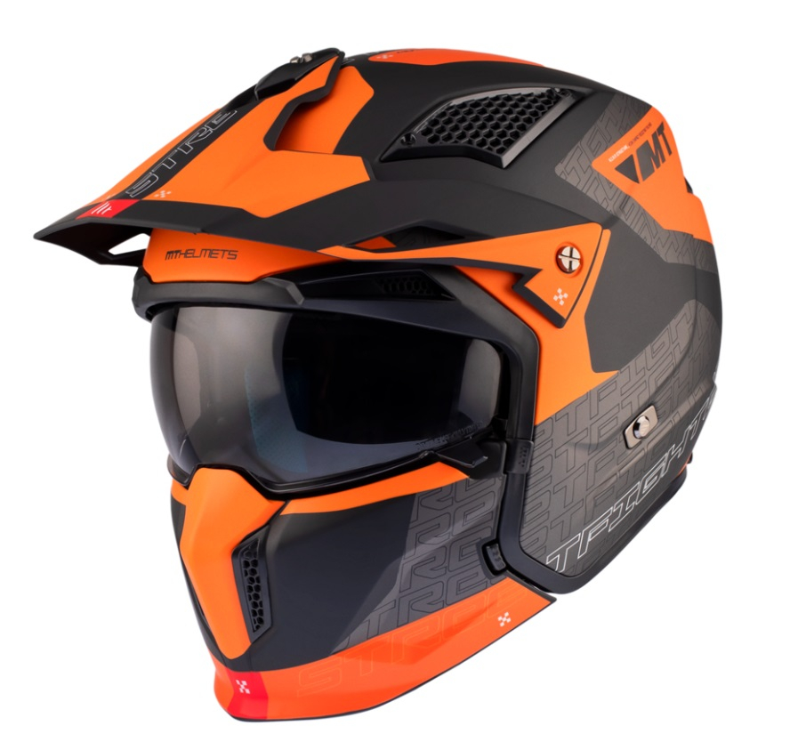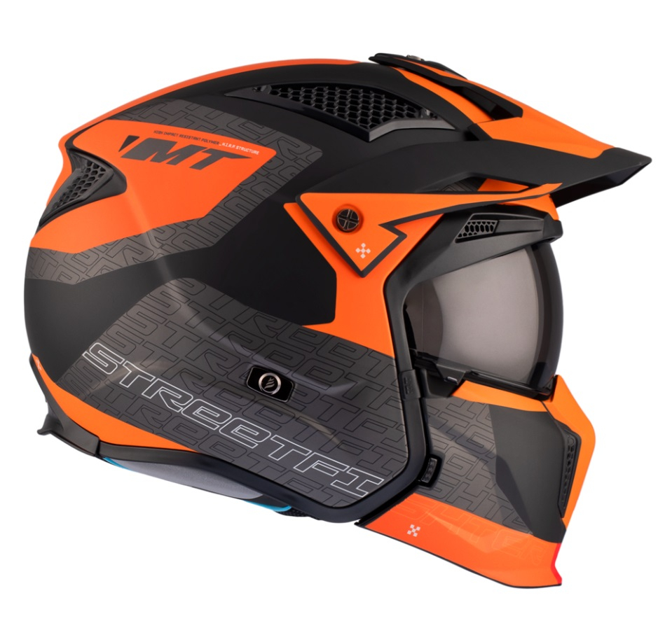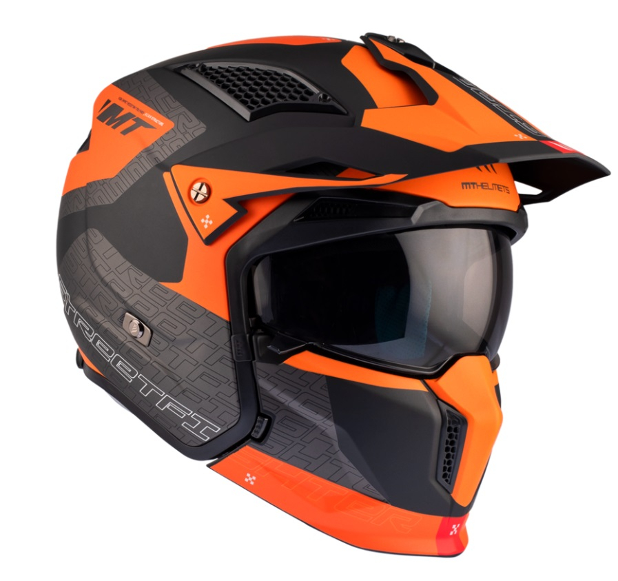 Casca MT Streetfighter Totem portocaliu mat (ochelari soare integrati) – masca (protectie) barbie si cozoroc detasabile – omologare noua ECE 22.06