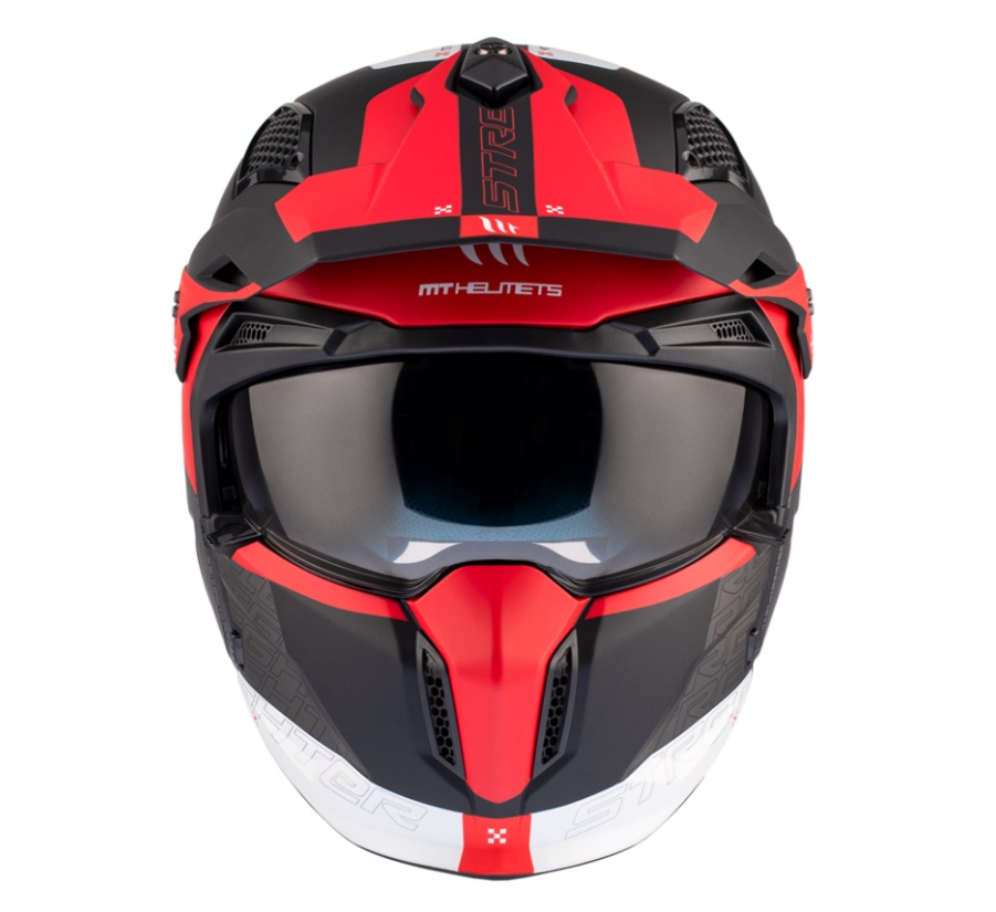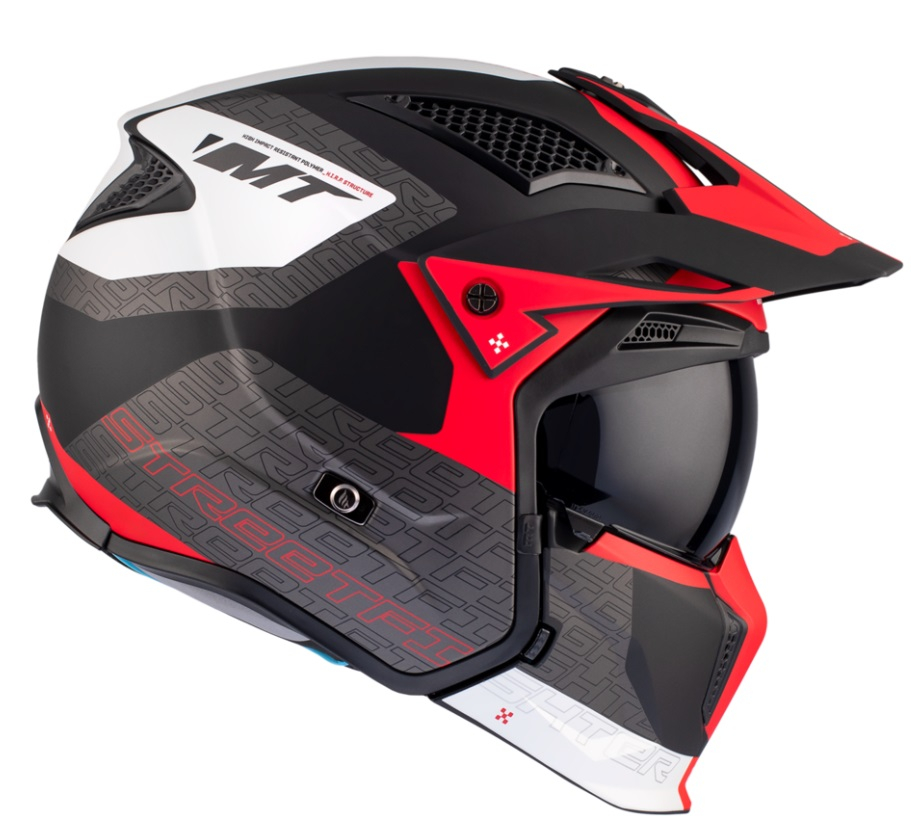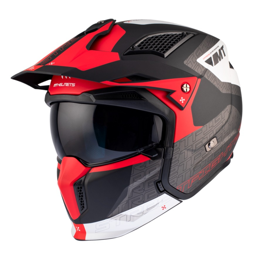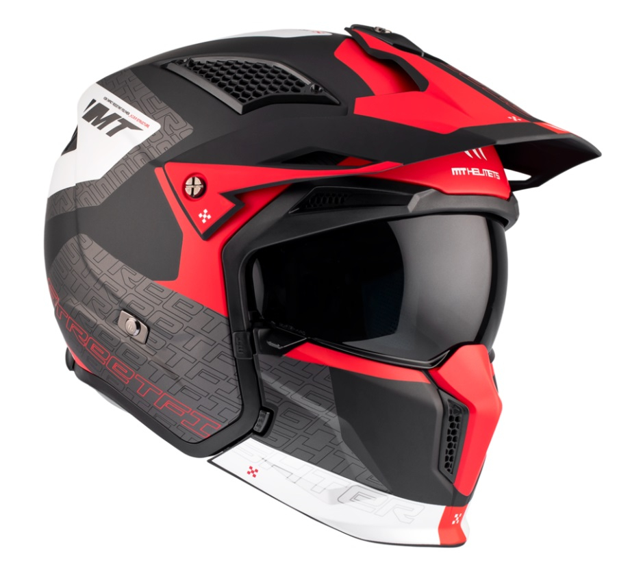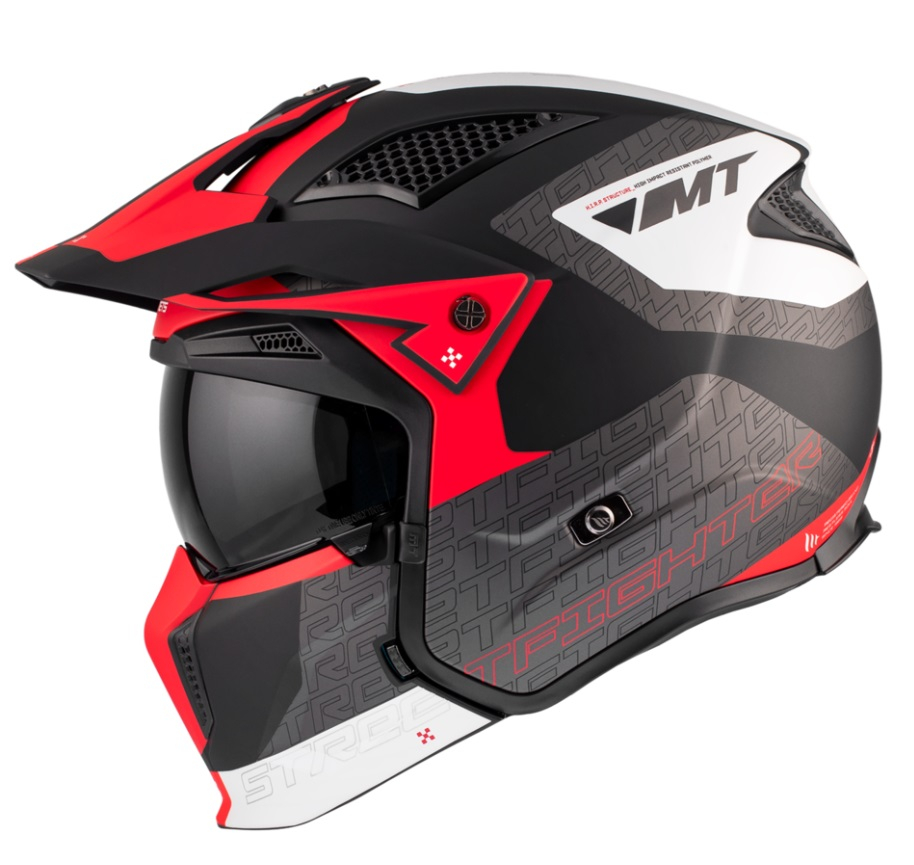 Casca MT Streetfighter Totem rosu mat (ochelari soare integrati) – masca (protectie) barbie si cozoroc detasabile – omologare noua ECE 22.06