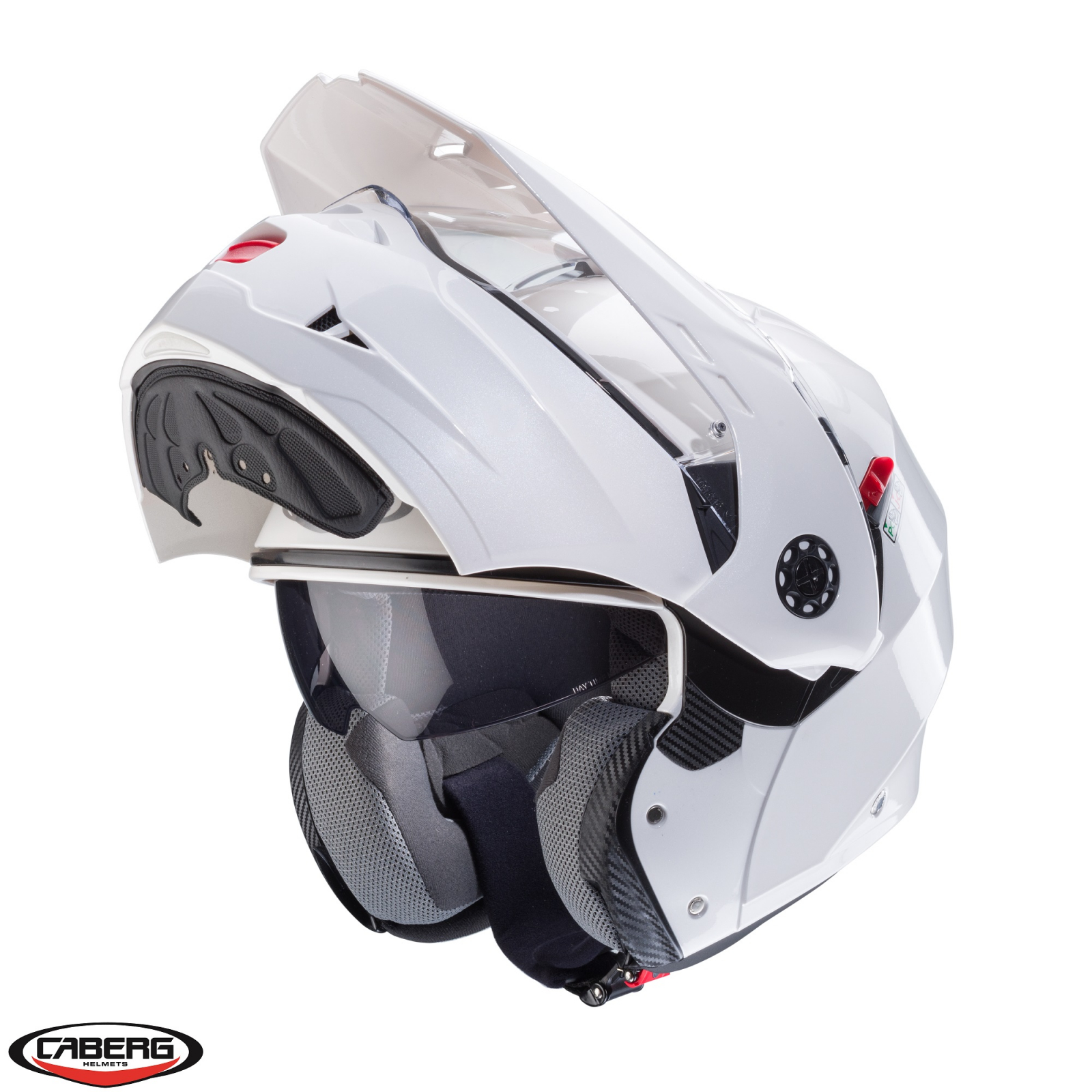 Casca modulabila (flip-up)/adventure Caberg model Tourmax X SV alb metalic lucios Pinlock ready – lentila Pinlock inclusa