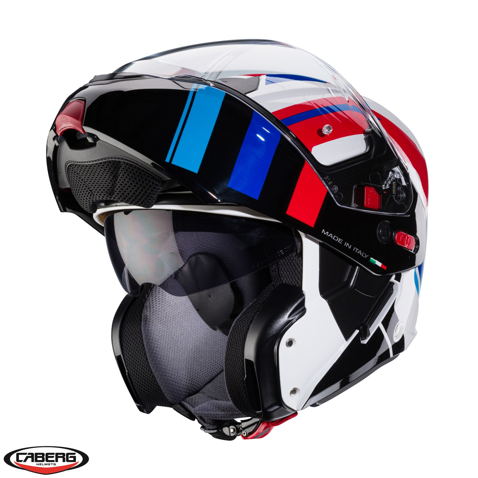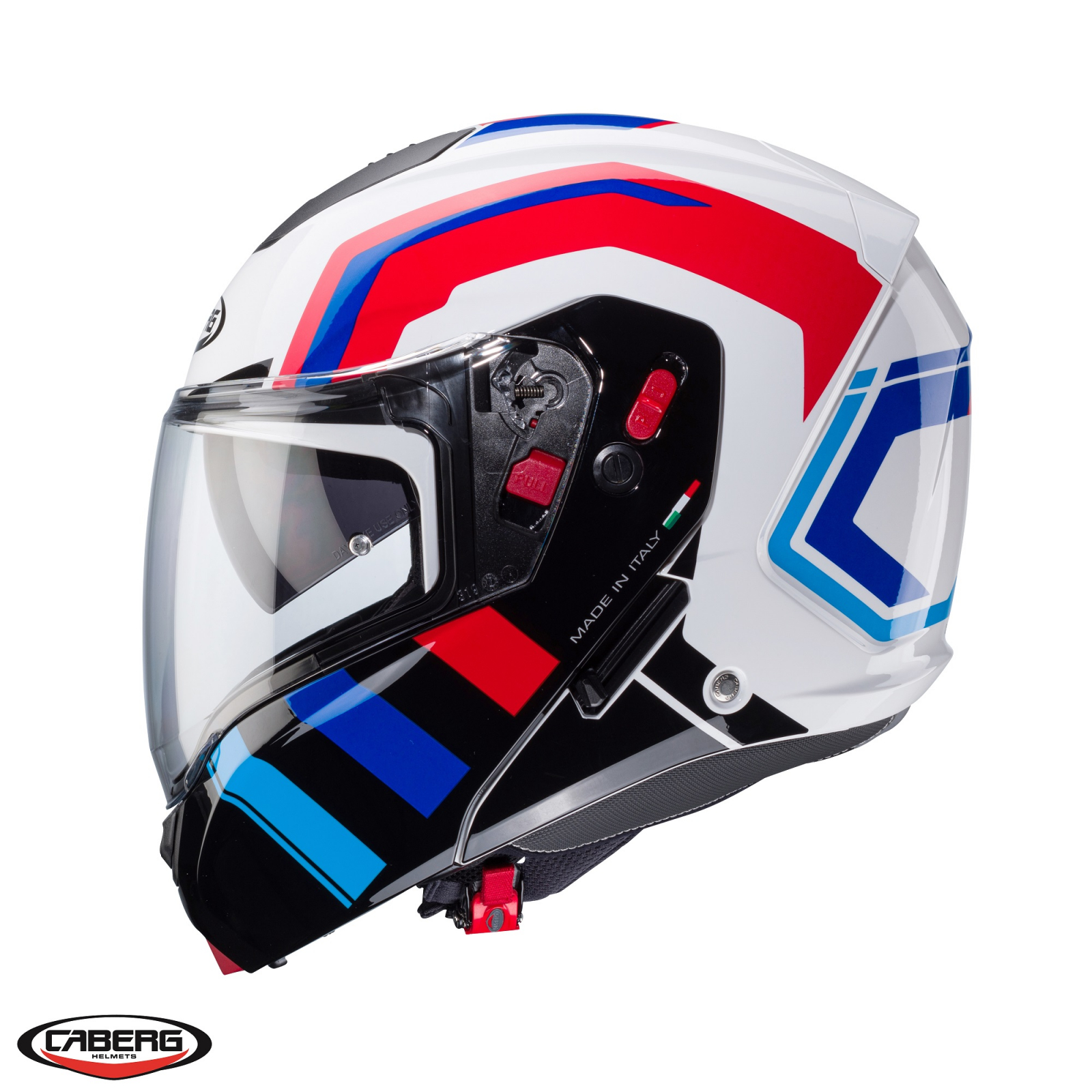 Casca modulabila (flip-up) Caberg model Horus X Road M6 alb/rosu/albastru lucios Pinlock ready – lentila Pinlock inclusa