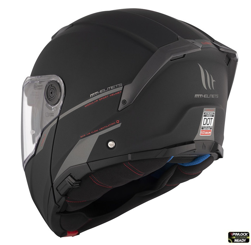 • mecanismul MT-QVSS este patentat de MT si permite utilizatorului sa ataseze sau detaseze viziera foarte rapid si confortabil, fara a da casca jos din cap;