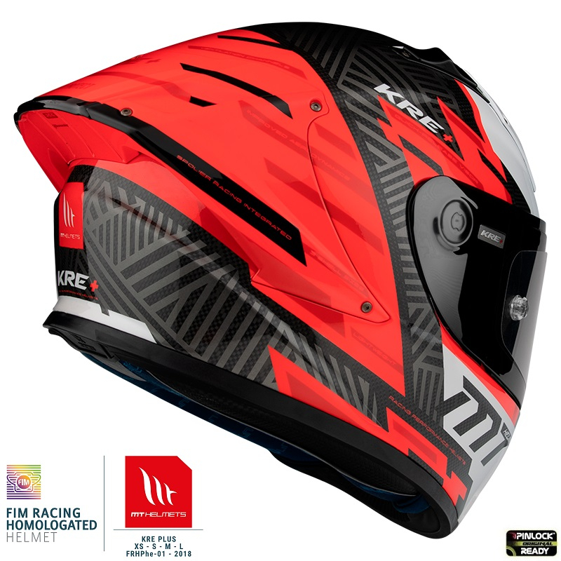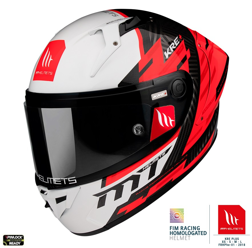 • modelul KRE+ Carbon reprezinta etalonul (varful de lancie) pentru cel mai vechi producator de casti din Spania (MT Helmets – companie infiintata in 1968), datorita faptului ca acest model este cel mai bun ambasador al brandului, din punct de vedere al caracteristicilor si specificatiilor: