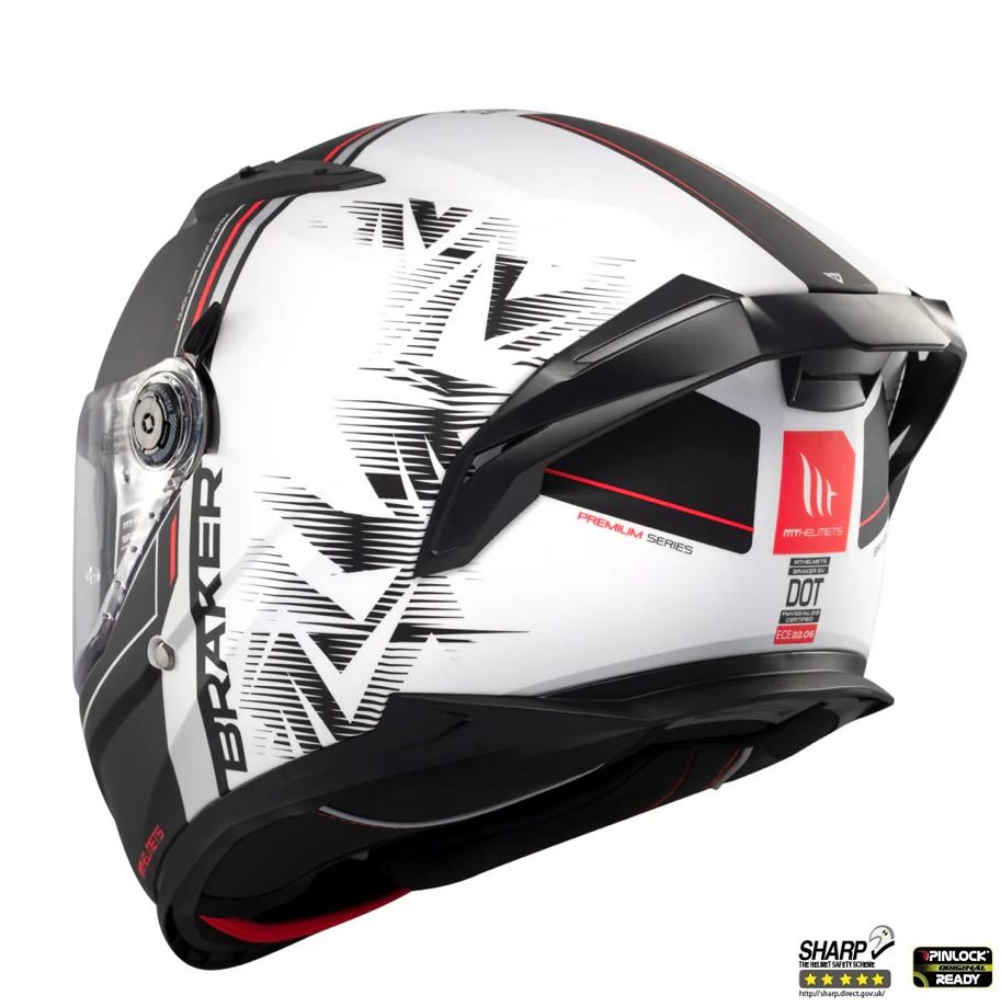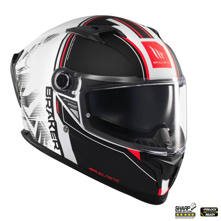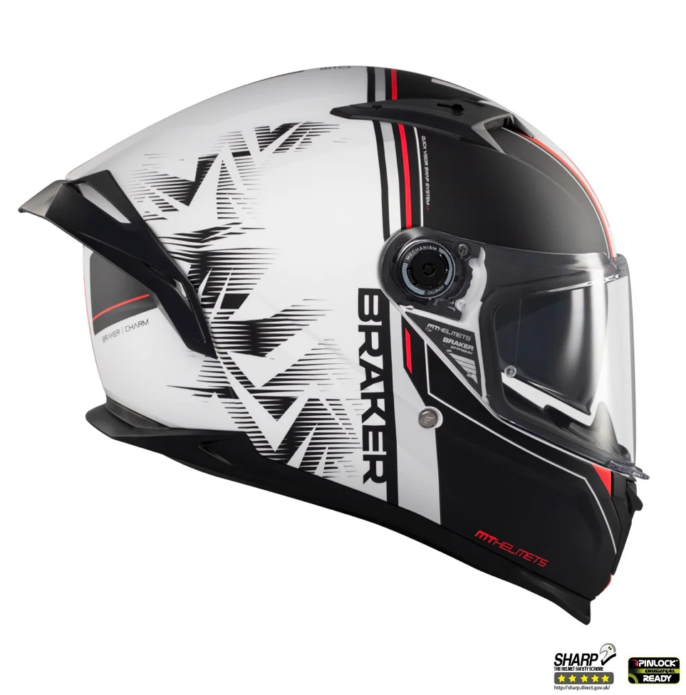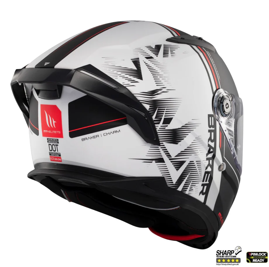Mt Helmets Casca integrala MT Braker SV Charm A1 alb/negru mat (ochelari soare integrati) – tip viziera: MT-V-28B – DKS435 – punctaj maxim SHARP Test – 5 stele