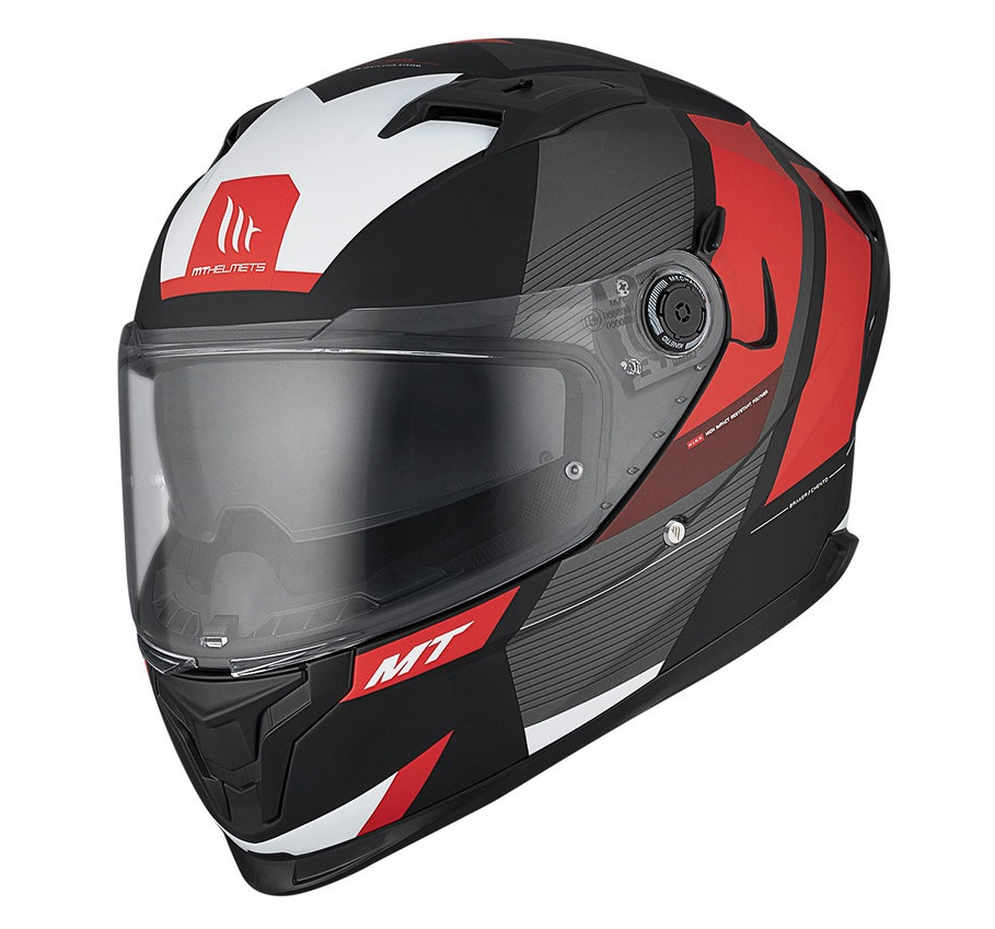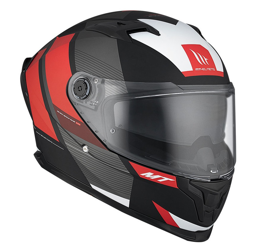 • mecanismul MT-QVSS este patentat de MT si permite utilizatorului sa ataseze sau detaseze viziera foarte rapid si confortabil, fara a da casca jos din cap;