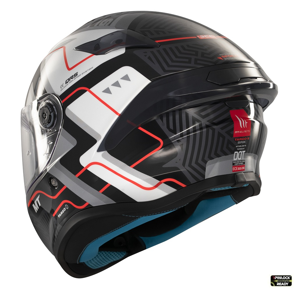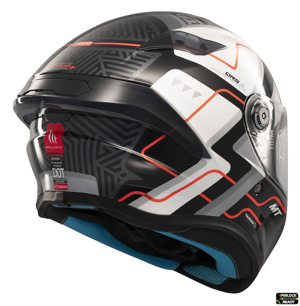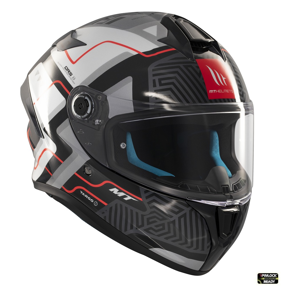 • MT-QVSS – Quick Visor Swap System – sistem proiectat intern de echipa de ingineri MT si echipat in premiera pe casca Targo S;