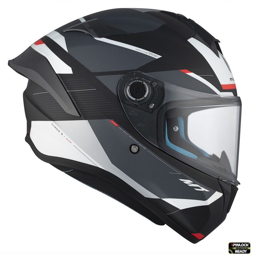 • MT-QVSS – Quick Visor Swap System – sistem proiectat intern de echipa de ingineri MT si echipat in premiera pe casca Targo S;