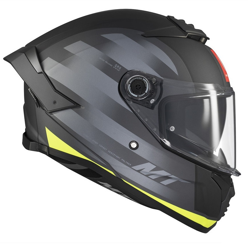 • mecanismul MT-QVSS este patentat de MT si permite utilizatorului sa ataseze sau detaseze viziera foarte rapid si confortabil, fara a da casca jos din cap;