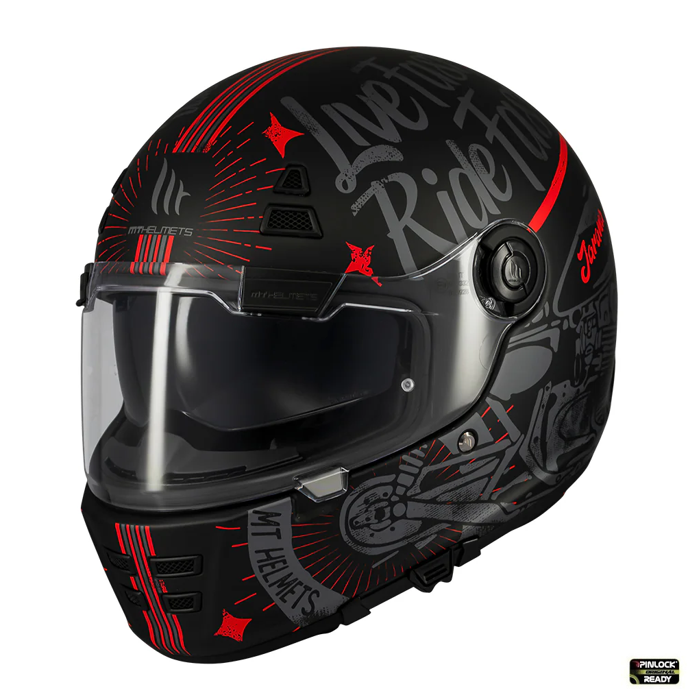 • mecanism vizor: echipa R&D a producatorului MT Helmets a proiectat un mecanism de viziera cu eliberare rapida a vizierei (Quick Release System);