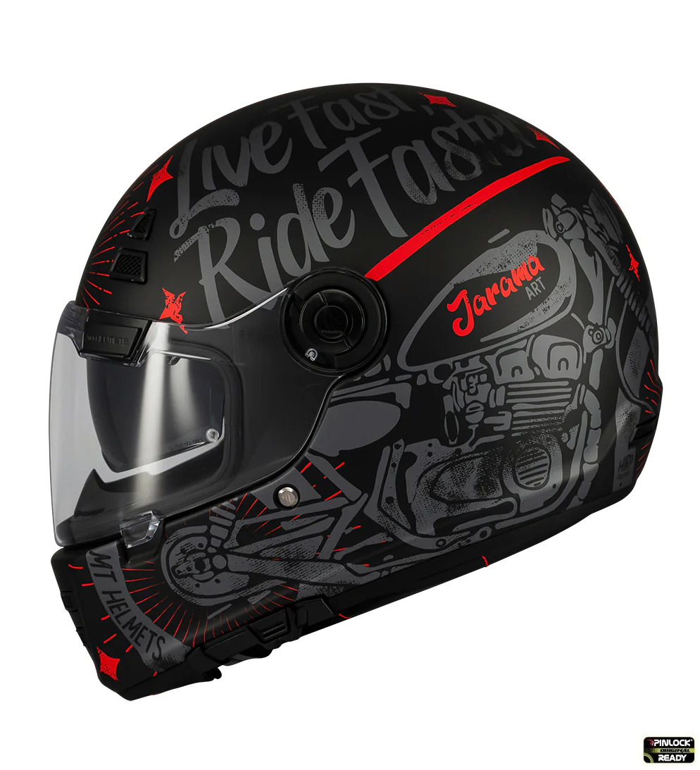 • Pinlock ready – viziera modelului Jarama SV este echipata pentru a putea fi montata pe ea lentila antiaburire tip MT-V-32 (lentila se achizitioneaza separat);
